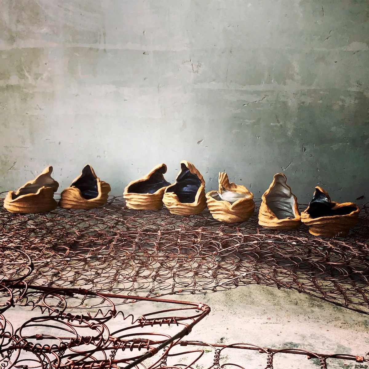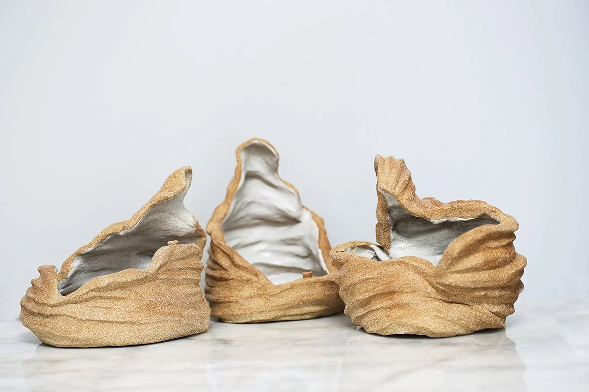 to interact, the clear glaze enhancing the naturally grainy properties of the clay, symbolic of sand dunes." - CANVAS MAGAZINE